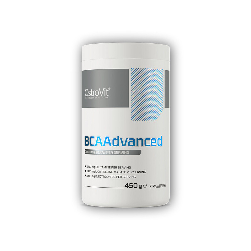 OstroVit BCAAdvanced 450 g je vysoce kvalitní práškový doplněk stravy dostupný ve čtyřech lahodných ovocných příchutích. Receptura je komplexní kombinací větvených aminokyselin BCAA s citrulinem, minerály a vitaminem B6. Byl vyvinut z nejkvalitnějších surovin pro všechny fyzicky aktivní lidi, kteří potřebují správně podpořit svůj každodenní jídelníček mimo jiné aminokyselinami, elektrolyty a citrulinem.