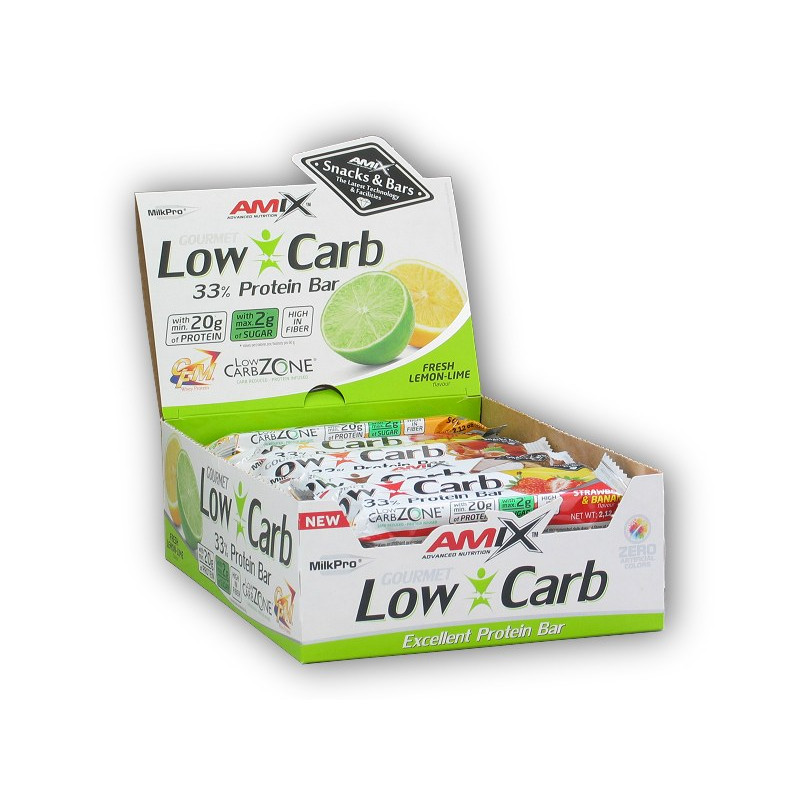 Low-Carb 33% Protein Bar je tyčinka se sladidlem, s nízkým obsahem sacharidů, speciálně cukrů a vysokým obsahem bílkovin.