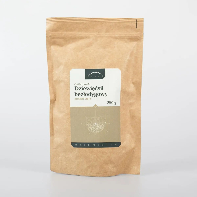Složení: Kořen světlovlasé byliny - Carlina acaulis - 250g sekaný