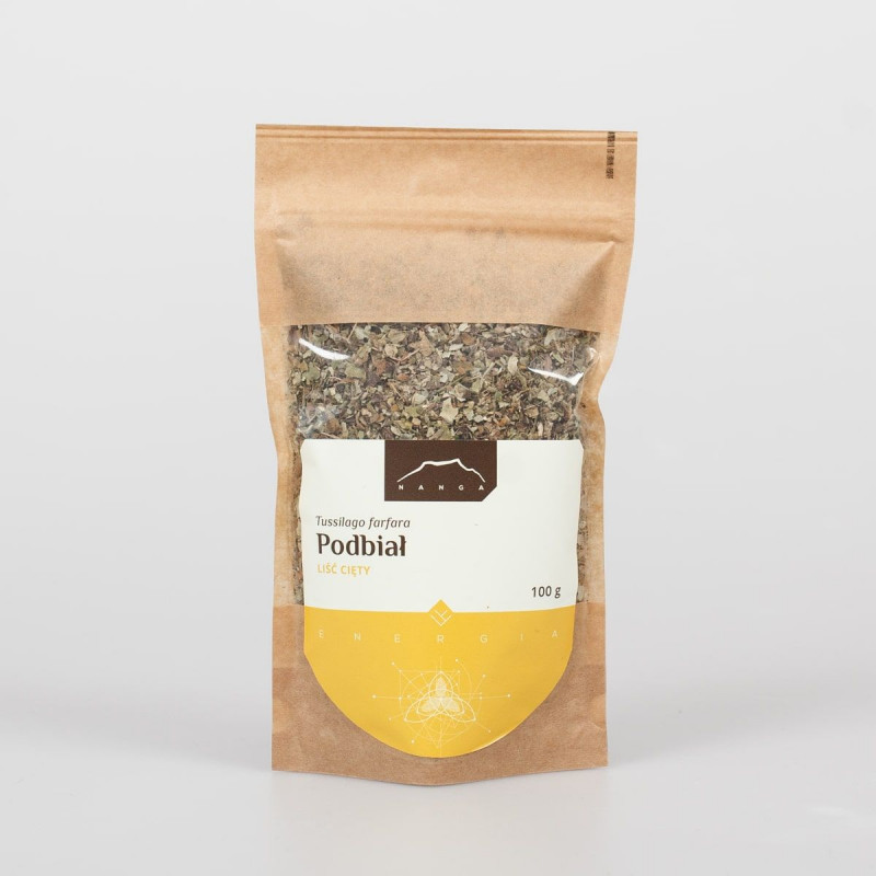 Složení: Podběl – 100% list. Surovina nejvyšší kvality! Listy podbělu obsahují slizovité sloučeniny, třísloviny, kyselinu gallovou, esenciální olej, flavonoidy, polyfenolické kyseliny, hořké látky (tusilagin), inulin, karotenoidy a minerální soli (sloučeniny zinku).