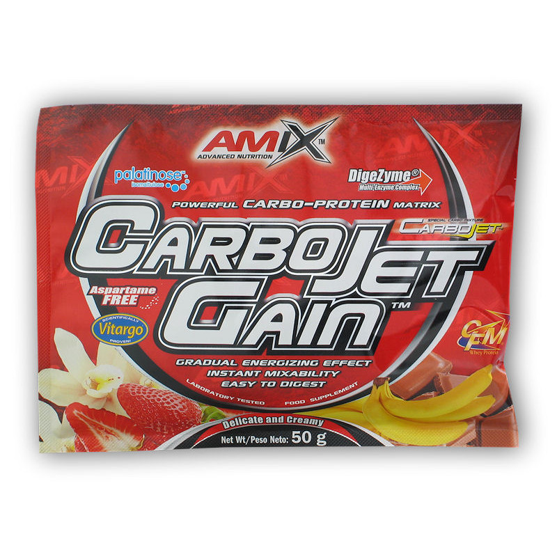 CarboJet™ Gain je speciální sacharidovo-proteinový práškový koncetrát. Obsahuje vysoce kvalitní bílkoviny Amix™ Protein Blend a exklusivní komplex sacharidů Amix™ CarboJet™ Matrix zahrnujících vysokomolekulární škrob Vitargo® a postupně vstřebatelnou isomaltulosu Palatinose®. Obsažené bílkoviny přispívají k růstu a udržení svalové hmoty.