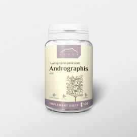 Složení: 1 kapsle obsahuje 400 mg extraktu Andrograhis paniculata standardizovaného na 10 % andrografidů. Celulózová kapsle. Balení obsahuje 100 nebo 300 kapslí. Andrographis obsahuje širokou škálu bioaktivních sloučenin. Jedná se především o diterpenové laktony, tj. andrografolidy, dále o flavonoidy, fytosteroly, flavony a minerální sloučeniny. ANDROGRAHIS PANICULATA – DÁVKOVÁNÍ 1 kapsle jednou denně před jídlem. Doporučená denní dávka (1 kapsle) je 400 mg extraktu andrographis. Nepřekračujte doporučenou denní dávku. Doplňky stravy nejsou náhradou pestré stravy a zdravého životního stylu. Registrační číslo přihlášky: GIS-ŻP-SD-4230-09734/KC/19 SYNERGIA Kombinace se sibiřským ženšenem (Eleutherococcus senticosus) zvyšuje příznivý účinek na imunitu a doporučuje se zejména při infekcích a nachlazení. KONTRAINDIKACE A INTERAKCE Andrographis může snížit účinnost antikoagulancií a antihypertenziv. Pokud dojde k alergické reakci, přestaňte používat. SKLADOVÁNÍ Chraňte před světlem. Skladujte při pokojové teplotě, na suchém místě, mimo dosah malých dětí. CHARAKTERISTIKA ROSTLIN Andrographis paniculata je v polštině brodivý pták paniculat. Je to jednoletá rostlina vyskytující se v tropickém a subtropickém podnebí. Vyskytuje se hlavně v Indii, Číně a jihovýchodní Asii, méně často v USA, na Bahamách a na ostrovech Tichého oceánu. Andrographis dosahuje výšky 50 až 100 cm. Roste s protilehlými listy podlouhlého tvaru a lesklým povrchem. Jeho květy jsou malé a bílé s fialovými skvrnami. Skládají se ze čtyř úzkých okvětních lístků ohnutých dozadu a ze středu vyčnívá dlouhá bílá tyčinka s fialovou špičkou. Plody andrografie vypadají jako malé zelené lusky, které rostou svisle vzhůru. Jsou asi 2 cm dlouzí. Uvnitř jsou hnědá semena. LABORATORNÍ TESTY Velkou pozornost věnujeme kvalitě produktů, které nabízíme. Každou dávku testujeme v naší laboratoři. U tobolek Andrographis 400 může naše oddělení kvality Maglab poskytnout: Certifikát o analýze V tomto případě nás prosím kontaktujte e-mailem.