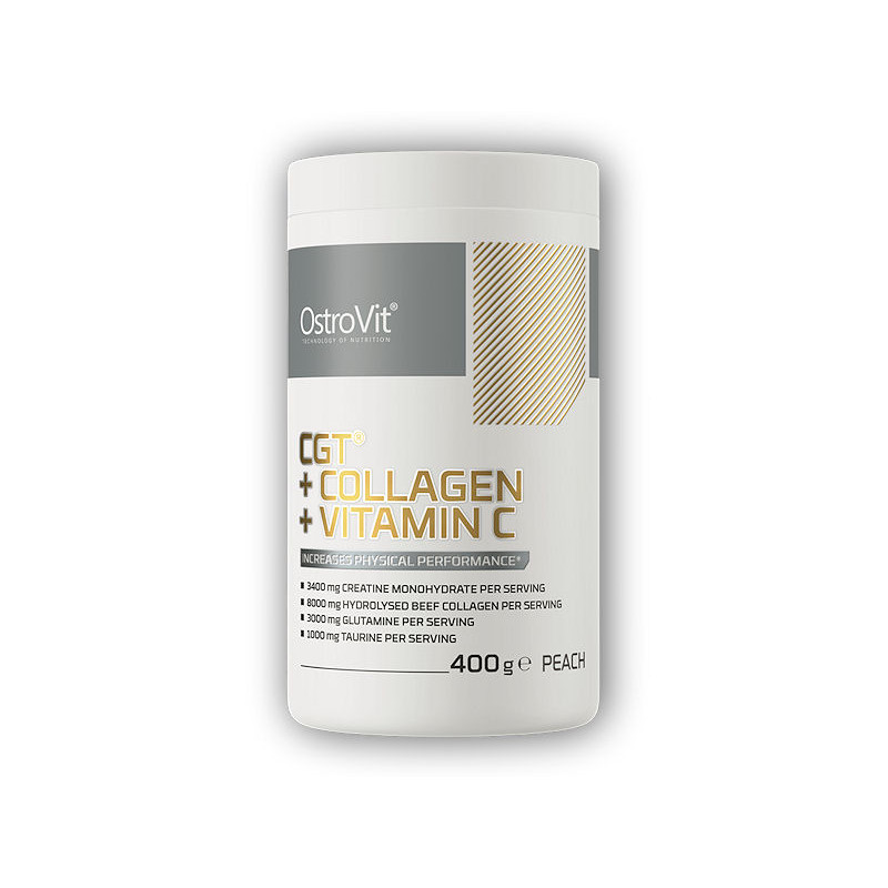 OstroVit CGT + Kolagen + Vitamin C je vysoce kvalitní doplněk stravy, který je zdrojem cenných látek, které tělu dodávají mimo jiné kolagen, kreatin a kyselinu askorbovou. Je k dispozici v praktické práškové formě určené pro sportovce a lidi, kteří chtějí doplnit svůj jídelníček o cenné sloučeniny.