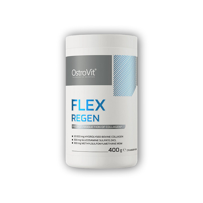 OstroVit Flex Regen je komplexní doplněk stravy, který je zdrojem cenných látek - přípravek obsahuje mimo jiné kolagen, glukosamin, vápník nebo vitamín C. Jde o produkt s unikátní, broskvovo-hruškovou příchutí, dostupný v práškové formě, který byl vytvořen pro lidi, kteří chtějí doplnit svou každodenní stravu o hodnotné ingredience.