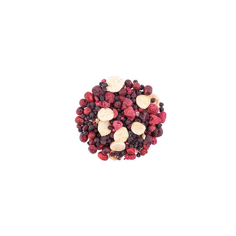 Mražené ovoce, Bez laktózy, Bez lepku, Vegan, -, Složení: Banán, Borůvka, Klika, Malina, Višeň, Balení: uzavíratelný sáček na zip