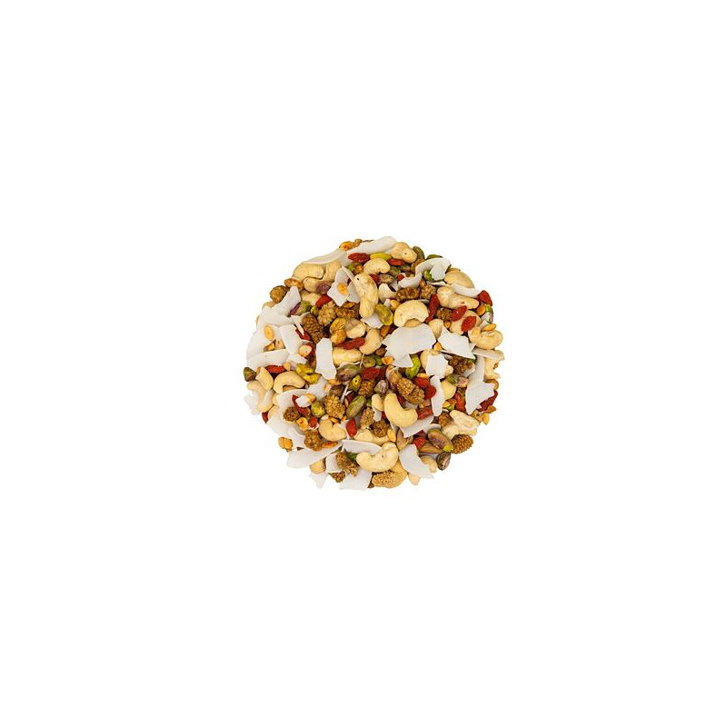 Směs ořechů a ovoce, bez laktózy, bez lepku, -, Složení: Goji, Kešu, Kokos, Moruše, Pistácie, Balení: Uzavíratelný ZIP sáček