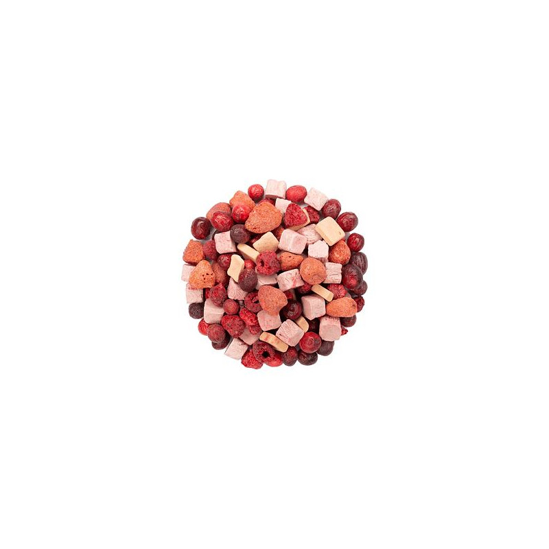 Bez laktózy, Bez lepku, Vegan, -, Složení: Banán, Jahoda, Klika, Kokos, Malina, Balení: uzavíratelný zip sáček