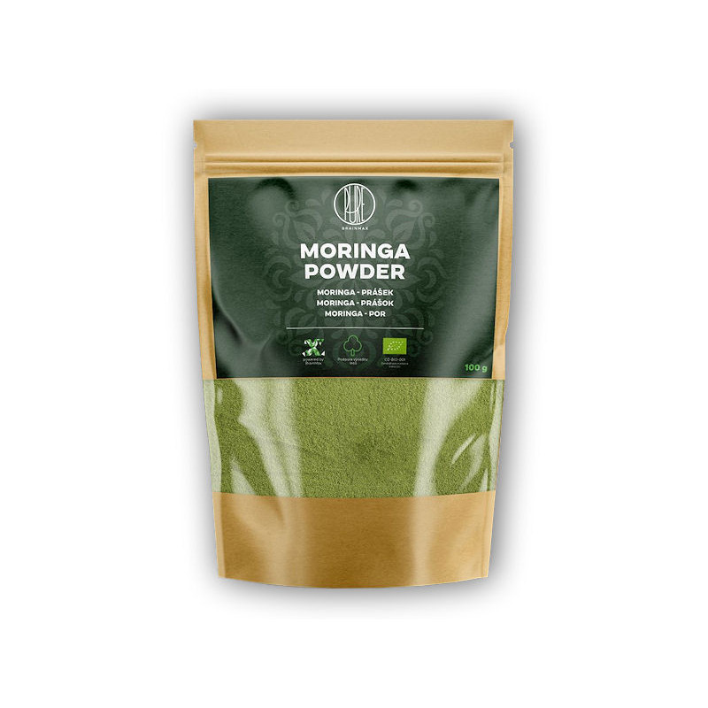 Moringa je přirozeným zdrojem vitamínů a minerálů. BrainMax Pure Moringa je 100% organický prášek, který je vyrobený z listů moringy, které obsahují důležité živiny. Sbírané listy se následně při nízkých teplotách melou na jemný prášek. Díky tomu si Moringa zachová všechny důležité živiny. Má překvapivě sladkou chuť, jemnou konzistenci a prášek je snadno rozpustný. Neobsahuje žádná barviva a je v certifikované BIO kvalitě. To znamená, že neobsahuje pesticidy ani jiné škodlivé látky. Je vhodný pro vegetariány i vegany.