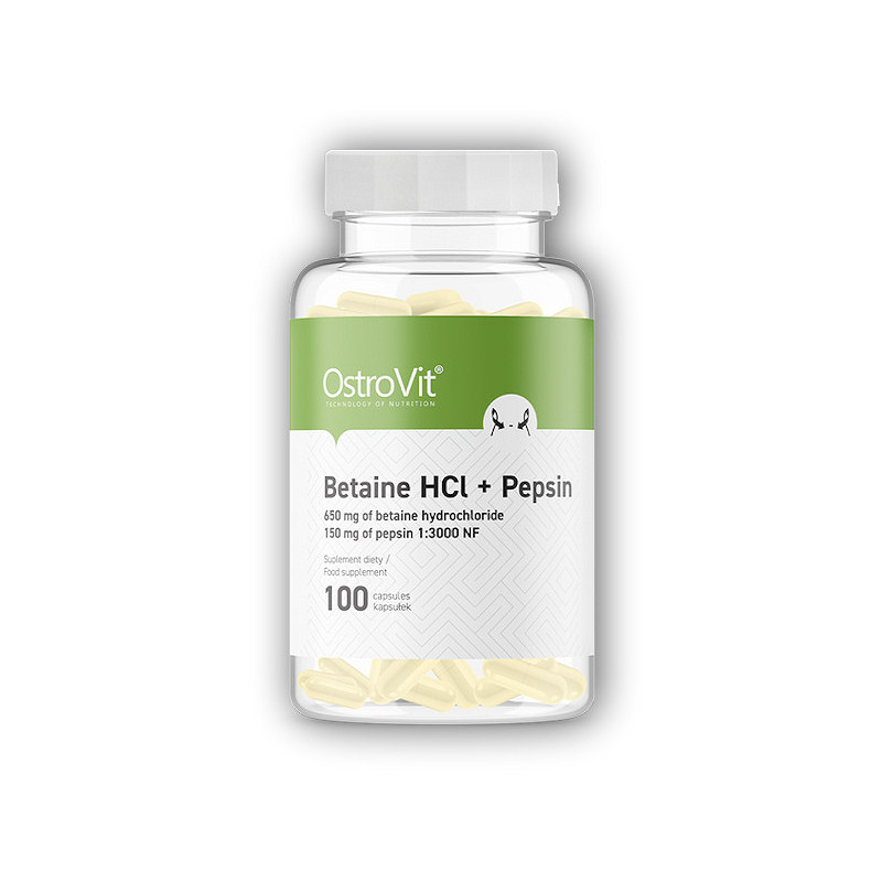 Složení: Betain hydrochlorid, pepsin 1:3000 NF, obal tobolky (plnidlo: hydroxypropylmethylcelulóza).
