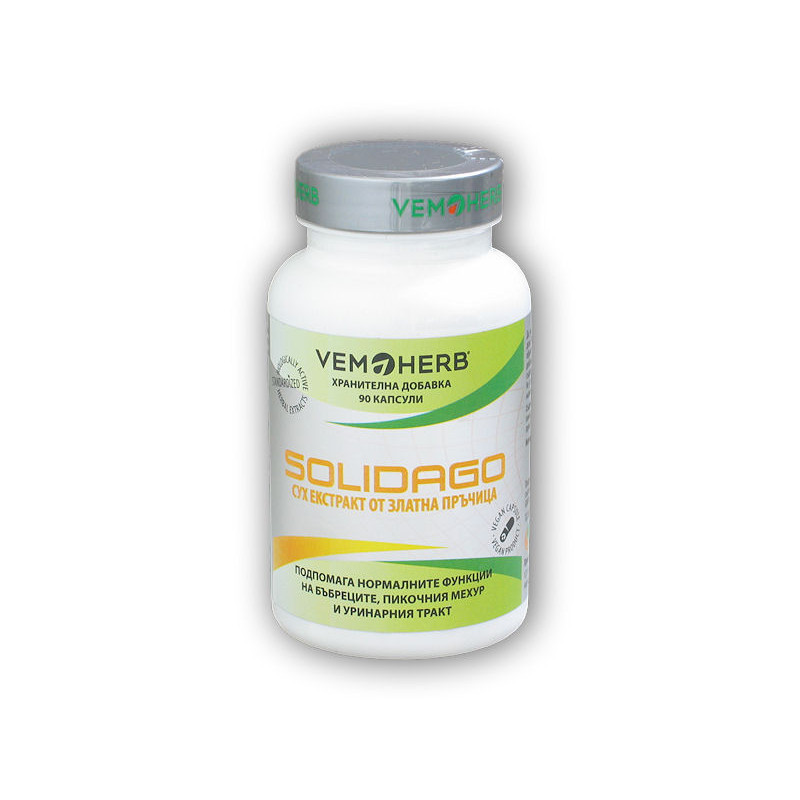 Vemoherb Solidago obsahuje suchý standardizovaný extrakt z nadzemní části rostliny Solidago vigaurea (zlatobýl). Obsahuje velmi široké spektrum biologicky aktivních látek – flavonoidy rutin, kvercetin a kaempferol, glykosidy astragalin a rutosid, saponiny, fenolické sloučeniny, éterické oleje, terpeny, antokyanidiny a další. Tyto látky tvoří velmi účinnou synergickou směs zaměřenou na podporu ledvin, močových cest, odvádění přebytečné vody z těla a dalších oblastí. Hlavními látkami v extraktu jsou již zmíněné flavonoidy, jejichž vlastnosti souvisí s vylučováním sodíkových iontů z těla a tím i s procesem tvorby moči, odváděním přebytečné vody z těla, vylučováním odpadních látek a podporou při zánětech. Produkt je vhodný pro všechny osoby zaměřené na: