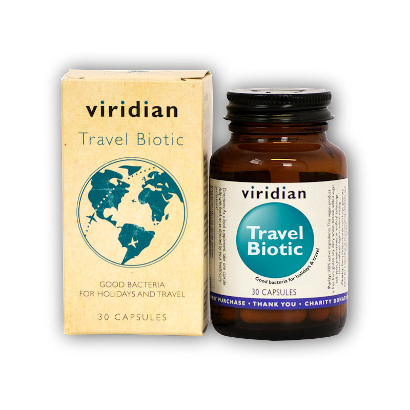 Travel Biotic obsahuje probiotika Saccharomyces Boulardii a prášek z kořene zázvoru.